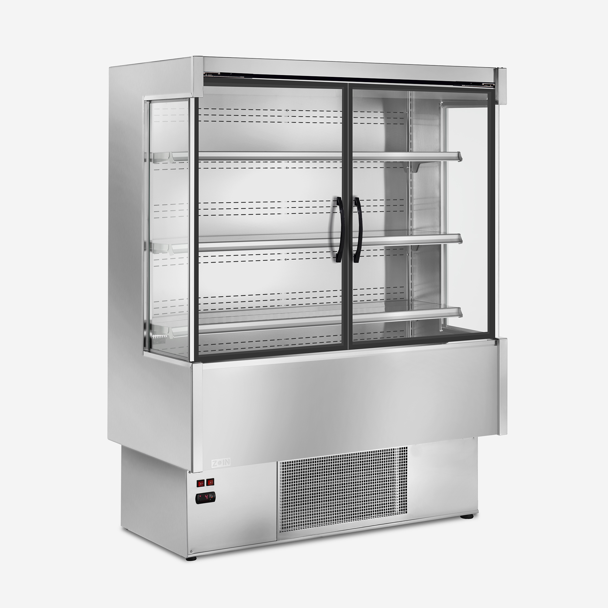 Construction entièrement en acier inox mat Joues Panoramiques en acier inox Groupe logé - Froid ventilé - réfrigérant R290 Contrôle électronique de la température +2°C/+8°C Dégivrage automatique. Ré-évaporation automatique des eaux de condensations. 3 étagères en acier inox montées sur crémaillères Eclairage L.E.D. en partie haute Dimensions extérieures: 1500x750x1820h mm