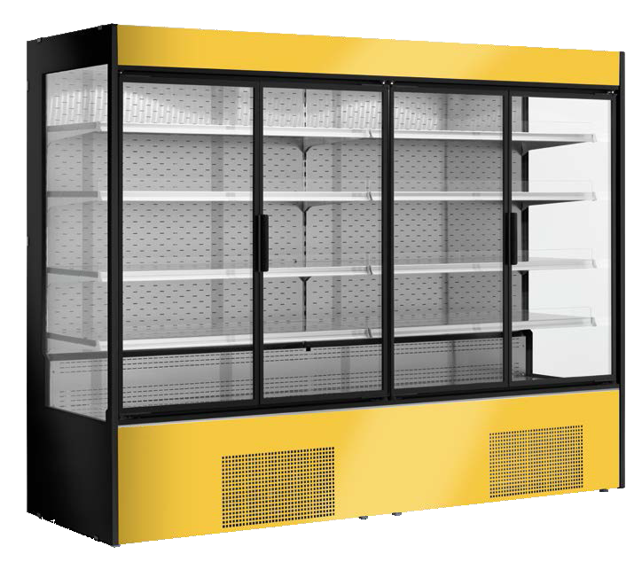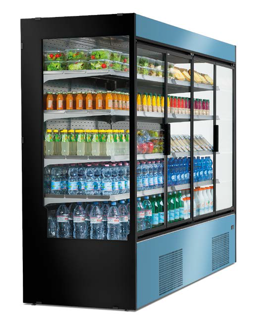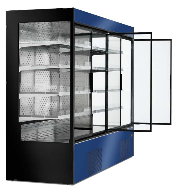 Construction intérieur en acier inox mat Joues panoramiques coloris noir (ou joue pleines grises ou noires) Panneau frontal coloris Blanc, gris, rouge ou noir (option autres couleurs) Groupe logé - Froid ventilé - réfrigérant R290 Contrôle électronique de la température +2°C/+8°C Dégivrage automatique. Ré-évaporation automatique des eaux de condensations. 4 étagères en acier inox (option étagère supplementaire possible) Eclairage L.E.D. en partie haute (option éclairage L.E.D. sous chaque étagère conseillé) Dimensions extérieures: 2560x850x2010h mm